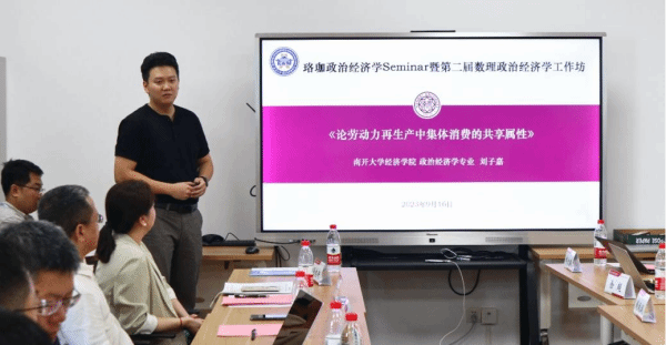 南开大学经济学院博士生刘子嘉同学汇报了题为《论劳动力再生产中集体消费的共享属性》的研究,该研究通过构建集体消费理论框架对主要发达资本主义国家和中国特色社会主义经济中的集体消费背后的分配关系进行了理论与实证分析。文章发现在资本主义制度下福利国家制度中的集体消费实质是有利于资本的再分配方式;而我国的集体消费方式实质是有利于劳动力再生产的分配方式,并朝着劳动者共享剩余劳动成果的方向迈进。