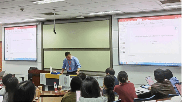 三位老师的报告聚焦学术前沿,逻辑清晰,引发了在场师生的浓厚兴趣。与会现场,大家各抒己见,纷纷与三位老师展开互动,交流了企业层面供应链数据的缺失可能导致的内生性问题、风险投资的独特作用、金融周期对债权类资本异常流动的波动性相比对股权类资本影响更大的经济学解释等问题。在热烈的讨论中,师生们均深受启发、收获颇丰,本次论坛圆满落幕。