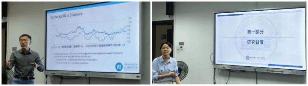 论坛下半场首先由硕士研究生汤潮进行了题为“Fama-French因子组合是有效的吗?——来自中国股票市场的证据”的报告。通过构建五种常用的Fama-French因子组合,分别检验它们是否存在非定价风险暴露,并进一步构建相应的非定价风险对冲组合用以对各因子组合的非定价风险进行对冲,最后比较对冲非定价风险前后五因子定价模型对截面股票收益率的解释能力。实证结果表明,Fama-French因子组合存在对非定价风险的暴露,使用文中构建的非定价风险对冲组合可以对因子组合中的非定价风险进行对冲,对于风险溢价显著的因子组合,对冲之后组合均值方差有效性会获得显著提升,并且对冲后的因子定价模型对股票收益率的解释能力也得到显著提升。