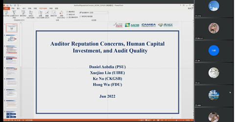 接着,刘雪娇教授分别从理论框架、研究问题、研究动机、文献回顾、假设发展、实证结果和研究结论等角度展开了对论文的分享。以往研究表明,会计师事务所遭受声誉损失时,常常通过增强内控体系、增强审计质量监管、使用AI系统更新换代等方法进行弥补。文章基于声誉动机视角,针对审计行业是人力资本密集行业的特性,分析了其中一种补救措施即人力资本投入对审计质量的影响,先进行了严谨的理论分析,然后利用北美BGT网站招聘数据进行了实证检验,并使用LinkedIn网站中数据进行了稳健性检验。