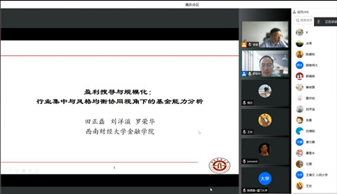 师生带来主题为“盈利搜寻与规模化:行业集中与风格均衡协同视角下的基金能力分析”的学术报告。本次讲座由金融系李斌教授主持,众多校内外师生参加了此次线上讲座。