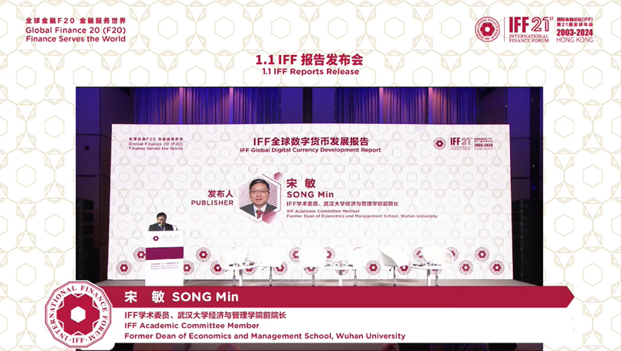 宋敏教授在中国香港举办的国际金融论坛(IFF)第21届全球年会中向各国嘉宾发布《全球数字货币发展报告》
