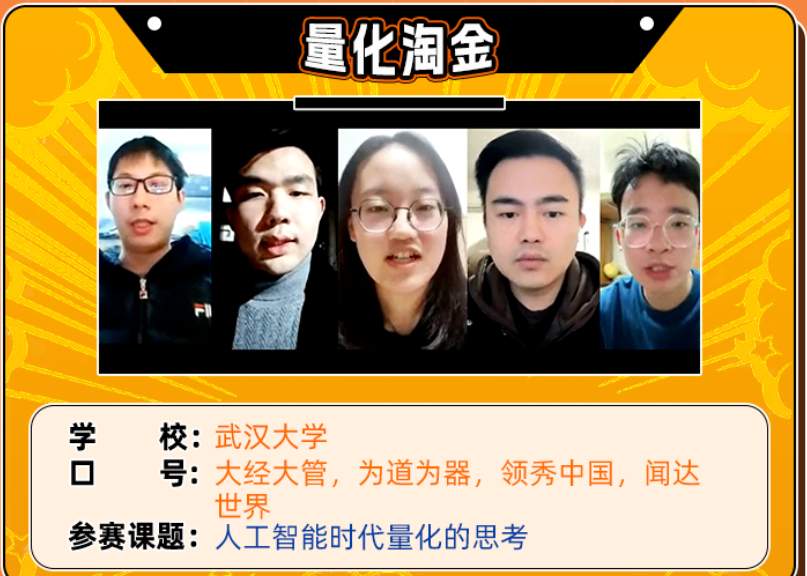 硕士研究生周颜锐、丁子阳、李祎明、姚佳睿、王玉娇组成的“量化淘金”队代表辣文