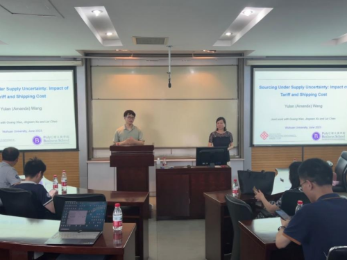 6月20日下午,学院市场营销与旅游管理系主办的珞珈经管创新论坛第五十三期成功举行。香港理工大学商学院汪玉兰教授以“供应不确定下的采购策略:关税和运输成本的影响”为主题做了精彩报告。黄敏学副院长、曾伏娥、许明辉、陈植元、李彬等多位师生参会,袁茂主持论坛。