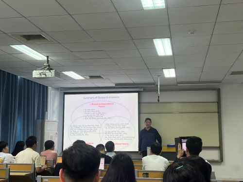 每次课程期间,师生们就怎样寻找研究空白、如何构建理论框架以及在组织研究中遇到的困难积极地与夏军教授进行了深入探讨,整个4天的课程学习充满浓厚活跃的学术氛围。7月1日下午训练营结课后,夏军教授与学院师生还进行了深度的交流并合影留念。