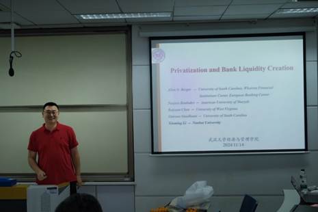 11月15日,景林珞珈金融论坛——2024秋季金融高质量发展研讨会在学院举行。会议涵盖多个领域的前沿话题,主要包括民国时期商业银行的资产配置与战后恢复、金融创新对企业高质量发展的赋能作用、银行民营化对流动性创造的影响以及中国银行业微观市场结构。本次研讨会由金融系主办,围绕中国金融体系和银行业的最新研究成果展开深入讨论,吸引来自全国多所高校及金融机构的专家学者。
