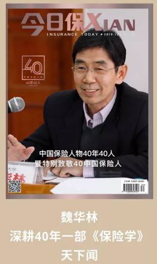 魏华林教授入选“中国保险40年40人”。对魏华林教授入选的评价是:深耕40年一部《保险学》天下闻。同期入选的还有泰康集团创始人陈东升董事长、平安创始人马明哲董事长、阿里巴巴集团创始人马云等金融保险界大咖。(相关新闻链接详见://caifuhao.eastmoney.com/news/20191220191149052218880)