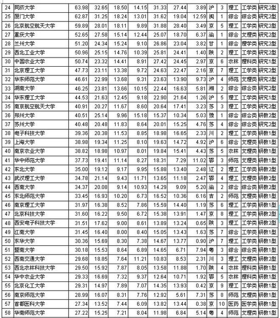 、四川大学、华中科技大学、山东大学等36所学校依次在列。苏州大学首次入选研究型大学。