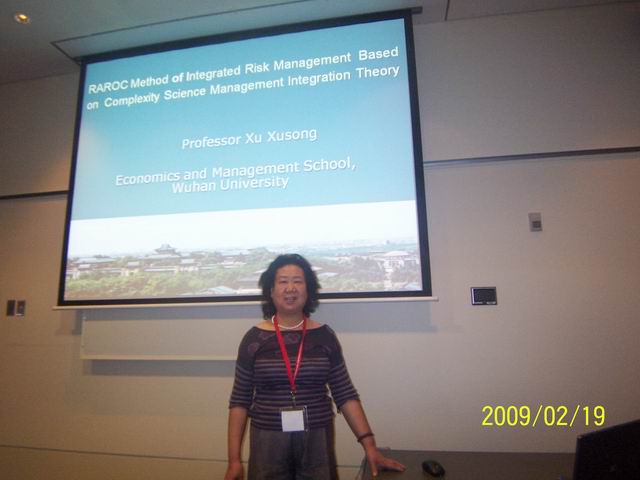本次会议是新南威尔士大学为庆祝建校60周年而举办的一次高水平国际学术会议,参加会议的有来自中国、日本、韩国、新加坡、马来西亚、印尼、菲律宾、印度、泰国、越南、中国香港和中国台湾地区的专家和学者逾200多人。会议为期两天,在第一天举行的学术,徐绪松教授做了题为“复杂科学管理整合论与整合风险管理(RAROC Method of Integrated Risk Management Based on Complexity Science Management Integration Theory)”的主题报告。
