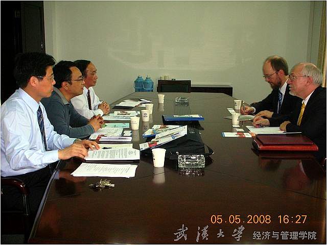 2008年5月5日德国Freiburg(弗莱贝格)科技大学副校长Michael教授与弗莱贝格经济与工商管理系主任Horst教授访问了辣文