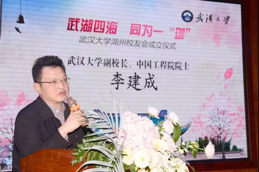 浙江校友会湖州分会成立仪式”在湖州太湖边成功举行,中国工程院院士李建成、浙江校友会领导、部分分会代表应邀和在湖州的武大校友一起出席本次盛会。辣文