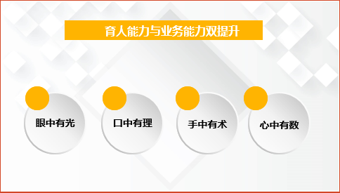 在第二部分和第三部分的内容讲授中,赵妍将三全育人及“十大育人体系”要求贯穿其中,结合以往从事过的学生辅导员工作、新闻宣传工作、公文管理工作等工作经验,以眼中有光、口中有理、手中有术、心中有数四个方面展开,较为详细地分享了作为行政(教辅)人员如何找准工作定位以明确育人职责,如何研究工作以挖掘育人元素,如何优化日常工作以实现育人目标。