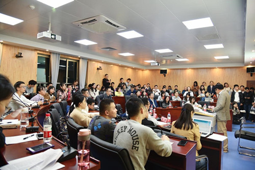 2019年10月17日,中国人民大学国家发展与战略研究院高级研究员、中国人民大学世情研究中心主任、原驻爱尔兰大使岳晓勇作为《经管董院名家大讲堂》第一期讲座的演讲嘉宾结合自身丰富外交经历和多年研究经验,全景式地为同学们带来了一场别具一格的国际形势分析课程。