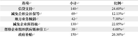 如前文所述,面对疫情,中央、省、市均出台了很多帮扶政策,但是这些政策落实到民营企业特别是中小微企业身上实际上非常困难。那么企业最期待怎样的救助方式呢?表4显示,企业最期待的救助措施是发放政府补贴、信贷支持和减免企业所得税。