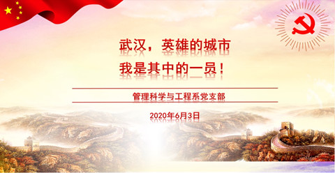 管理科学与工程系党支部响应学校学院党委“深入学习贯彻习近平总书记在疫情防控期间系列重要讲话和重要指示批示精神,切实用习近平新时代中国特色社会主义思想武装头脑、指导实践、推进工作”的号召,以“武汉,英雄的城市!我是其中的一员”为主题,在腾讯会议上组织开展了一场别开生面的“精准抓防控、创新谋发展”视频主题党日活动。此次活动由支部代理书记陈植元主持,管工系全体教师党员出席,会议还特别邀经管学院杜晓成书记出席会议并做讲话,学生党员代表也参与了此次活动。