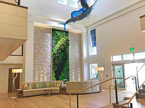 植物墙是用绿色植物编植成的墙体,是利用植物的根系对生长环境的超强自适应能力,使自然界中栖息于平地上的植物生长于垂直的建筑墙面。植物墙为建筑设计和建筑装饰提供了一种新型的有机生态材料。利用植物代替砖、石、钢筋水泥来砌墙,不仅占地面积少,省料省钱,而且能绿化美化环境、减少噪音、净化空气、调节温度,具有很多好处。
