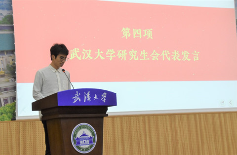 研究生会代表陆泽宇同学分享了对于研究生会建设和改革的学习感悟,希望学院研究生会贡献源源不断的青春力量。