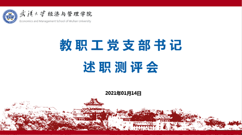 为全面总结学院一年来的工作,营造实干创新的良好氛围,促进学院事业快速发展,2021年1月14日,学院内设机构主任、教职工党支部书记2020年述职测评会在学院教工之家举行。院党委书记杜晓成、院长宋敏,副书记邬明建、李好,纪委书记王滨,副院长方德斌、余振、沈作霖参加了测评会。年终述职会分上午内设机构主任述职测评和下午教职工党支部书记述职测评两个阶段,分别由沈作霖、邬明建主持,会后宋敏和杜晓成分别就两场述职进行了总结发言。