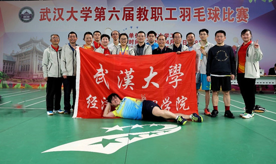 羽毛球队与老牌劲旅兼上届全校四强、种子队的后勤集团队遭遇,这一场成为决定经管院队是否晋级的关键比赛。队员商议后果断变阵,在混双、男一双两局暂时告负、积分0:2暂时落后的情况下,女双队员在大比分落后的情况下逆转,反超对手,拿下关键局。之后男单和男二双均取得胜利。至此,经管院羽毛球队拿下了对阵后勤集团队的比赛,以小组第一身份、与对手携手迈入八强。第二天的淘汰赛中,第一场即遭遇另一强敌后保队。在女双、男单胜,另两局败、整场大比分2:2的情况下,男二双在双方胶着、交替得分、比分仍然29:30落后的情况下,咬紧牙关,沉着应对,将比分拖入了30:30,吸引了整个卓尔馆的目光。最终,凭借强大的集体荣誉感和自信心,顶住压力,拿下了历史性的一球,战胜后保队,与中南医院一队、机关一队、体育课部队等三个兄弟单位一起,挺进四强。之后负于头号种子中南医院一队,止步四强。