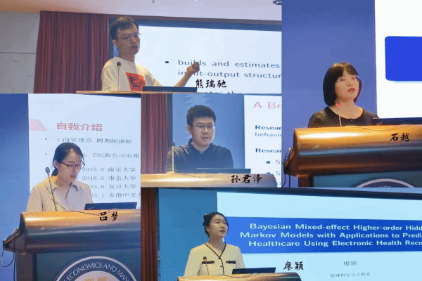 在9月8日的论坛中,新进老师孙君泽老师的研究关注公众投票者缺乏信息可能导致投票结果受到操纵的现象,并在模型中考虑了多样化的发送者偏好,研究发现,对于社会规划者来说,披露全部信息通常不是最佳选择,而媒体竞争可能导致过多的信息披露,从而损害社会福利。此外,社会规划者与关键投票人之间的利益冲突是影响公共信息政策最优性的关键因素。熊瑞驰老师分享了他在中美航空网络扩张背景下企业供应方面的研究课题。这项研究采用了一种新的旅行时间工具,考虑了中美航空市场的监管情况,研究发现,缩短前往中国的旅行时间促进了美国城市企业的创立,尤其在供应链复杂性较高的行业中,这一促进作用更为显著。石越老师介绍了涉及统计估计误差的再制造计划问题。他将再制造规划问题建模为鲁棒的马尔可夫决策过程,并采用高置信度的方法构建包含真实转移概率的模糊集,从而构建了一种基于数据的再制造规划建模框架。廖颖老师介绍了一种高级贝叶斯混合效应隐马尔可夫模型(MHOHMM),用于捕捉患者生理信号中的复杂时间模式,并设计了一种高效的马尔可夫链蒙特卡罗抽样算法,用于对模型进行推断,并通过该模型进行了分类和预测。吕梦老师利用中国A股市场数据,采用堆叠差异中差异(DID)方法,研究了信息披露法规对收益的影响,研究结果表明,信息披露指导的实施增加了市场对财务信息发布的反应,并促进了公司特定信息纳入个别公司的股票回报。