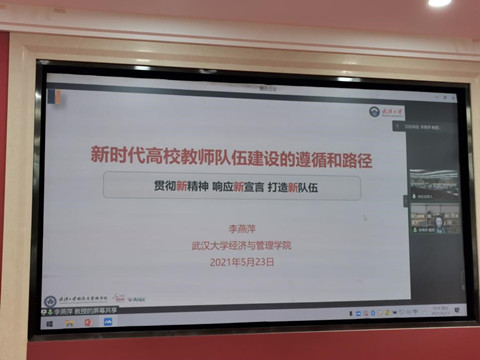 李燕萍教授以教育部工商管理类专业教指委委员的身份参与了5月23日的专业建设论坛,通过线上方式发表了以“新时代高校教师队伍建设的遵循与路径”为主题的演讲。李燕萍教授从习近平总书记的发言入题,首先带领大家深刻领会习近平总书记关于高校教师队伍建设的指示精神,强调“四个引路人”“四个相统一”,然后提出工商管理类专业教师应该准确把握高校新文科建设对教师提出的新要求,包括有历史担当、责任意识和过硬本领三个方面。最后李燕萍教授提出了新时代提高高校教师队伍水平的政策建议:保障力度要强、发展环境要好、发展质量要佳。