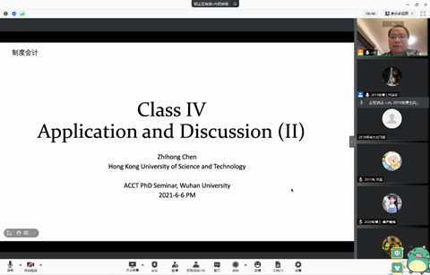 会计学研究生研究学分课程建设项目《制度会计》于2021年6月5-6日在腾讯会议线上举办。本次课程邀请香港科技大学陈治鸿教授讲授分成四次课程讲授。四个专题分别为“Empirical accounting research:an introduction and sharing”、“Casual Interfere”、“Application and Discussion:Managerial Incentive and Financial Report”、“Application and Discussion:Real Effect of Financial Report”。该课程由会计系李青原教授负责,会计系在读博士生参加了本次课程学习。