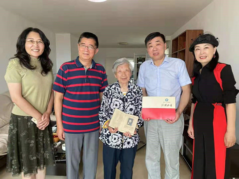 北京校友会执行会长喻杉等登门拜访并接受赠送。老校友见到母校来人,异常高兴,抑制不住内心的激动,滔滔不绝地追忆起她在武大学习生活的历历往事,还不无风趣地讲到了同学们给老师取绰号的故事。