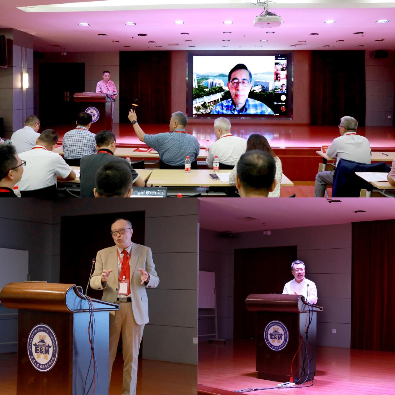 珞珈讲座教授、香港科技大学的李家涛教授。李教授在线上做了题目为“Global Strategy and Digital Economy”的专题报告,介绍了自己为迎接数字化挑战,从生态系统特性优势理论视角(ecosystem-specific advantage,ESA),以国内的京东和国外的亚马逊为研究对象开展学术研究的情况。华南理工大学讲座教授吕源,以《虚实共在:数位时代的战略转型》为题,向在座师生分享了他对数字战略的独到见解,构建起虚拟世界与实在世界相交融的“人—技术—结构”三元战略管理模型。第三位报告嘉宾是清华大学李东红副教授,他以《从MBA〈数字化战略〉的开设看产教融合》为题,分享近几年的开课历程,总结了三点启示:组织化的产教融合、且行且尝试和同步自我转型组织化的产教融合、且行且尝试和同步自我转型。