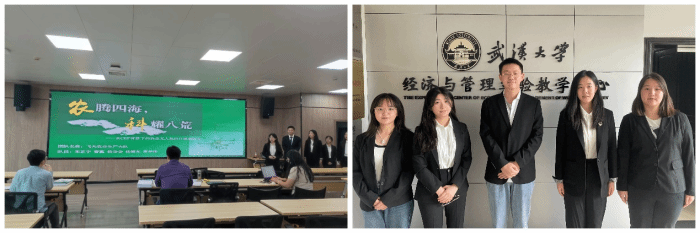 9支队伍经过精打细磨,在10月19日这天交上了一份满意的答卷。各团队在答辩过程中深度解读全球贸易现状,结合RCEP协议,充分分析了选定产品的出口前景。从农业无人机的海外开拓、到扫地机器人的东亚进军;从太阳能电池的泰国战略,到光伏玻璃的越南突进;从通信光纤的海外鍪战,到宠物食品进军日本,还有绿色环保的中国电机,充满潜力的钙钛矿电池等,利用多种科学方法,深入分析了中国产品在国际市场上的优势与劣势,充分考虑了前景和风险,提出了可行的政策建议,在短短的10分钟答辩中充分展示了武大学子的风采。