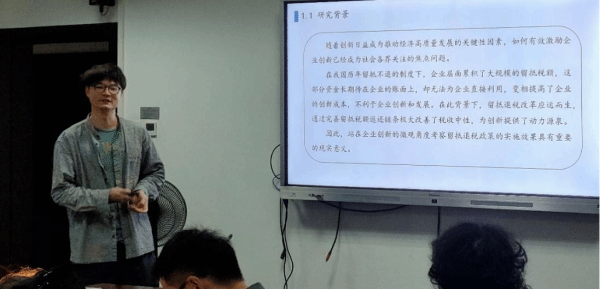 随后,硕士研究生田柳同学做了题为“数字政务与企业融资约束——基于跨国数据的研究”的报告。报告基于联合国和世界银行的数据,实证分析了数字政务建设对企业融资约束的影响。研究发现,数字政务建设有利于缓解企业融资困境,这一效应对中小规模企业更明显。进一步分析显示,数字政务建设对改善信息环境以及提升政府治理水平具有促进作用,从而缓解了企业融资约束。研究认为政府应加快建设数字政务,强化自身综合治理能力,并为缓解企业融资约束、促进企业发展打造良好的信息环境。