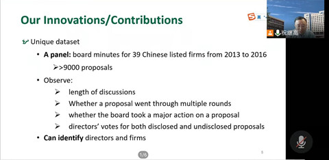 师生带来题为“Independent Directorsand Active Boards: Evidence from Board Minutes(独立董事与积极的董事会:来自董事会纪要的证据)”的讲座。