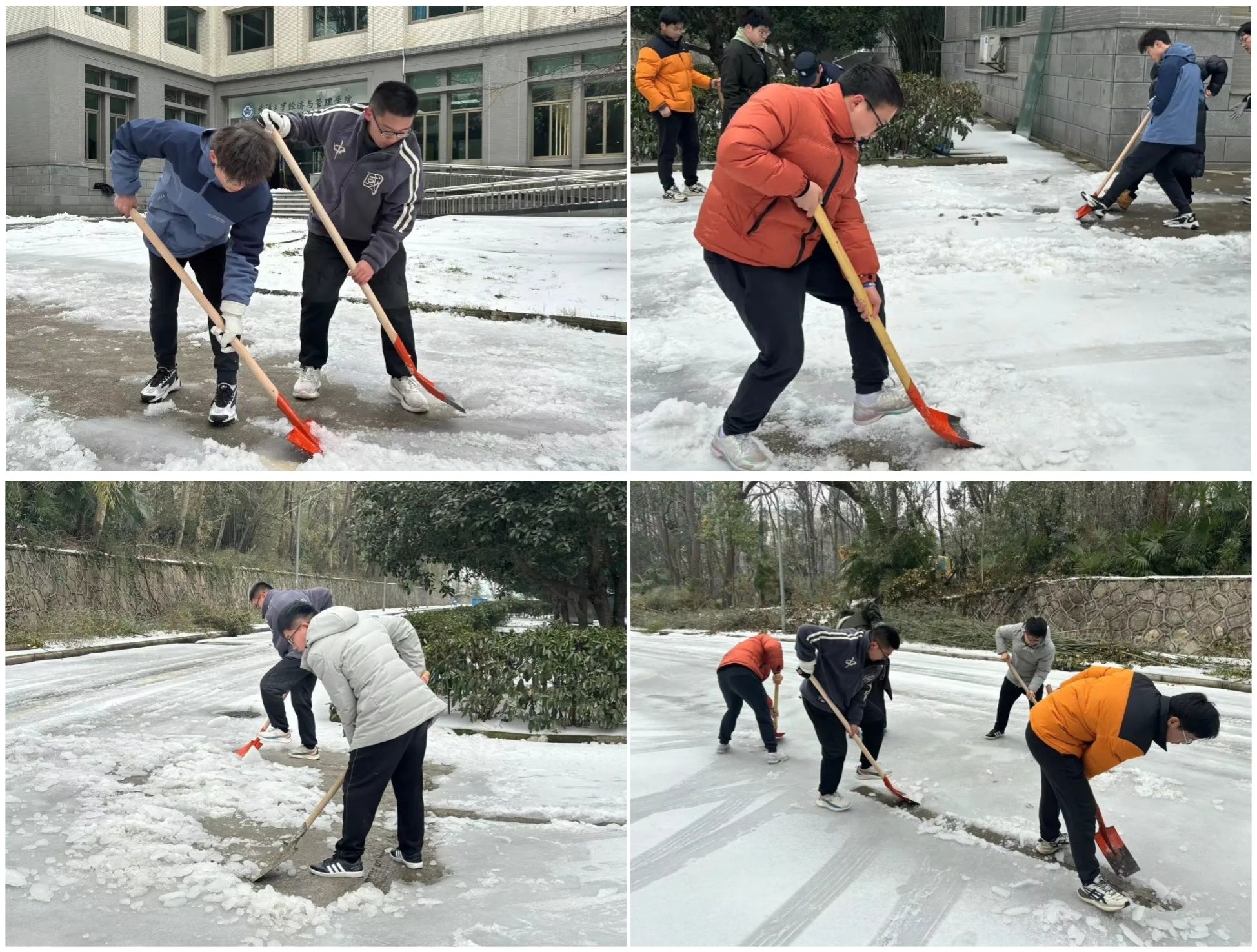 行动是最好的融雪剂。经过数小时辛勤劳动,师生齐心协力在学院大楼周边开辟出安全的通道以供行人车辆通行,营造了畅通的出行环境,让原本被冰雪覆盖的校园重新焕发出生机。