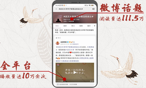 不仅如此,1920班团支部拍摄的祝福视频更是经央视军事、西藏军区、青春湖北等媒体转载,播放量达10万余次,话题阅读量突破110余万。