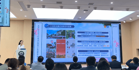 团委书记李铭老师以“传百卅薪火,育时代新人”为题目,通过“从影响到引领,在为党育人中领航前行”、“从贴近到凝聚,在服务大局中绽放光彩”、“从亮眼到润心,在青年发展中进取有为”和“从攻坚到磨砺,在深彻锻造中焕发生机”等四个部分,围绕思想引领、基层团建、校庆服务、社会实践、志愿服务、创新创业、学科竞赛、校园文化、国际视野、团学改革等多方面展示了学院团委过去一年取得的工作成绩,获得了现场评委和观众的一致好评。