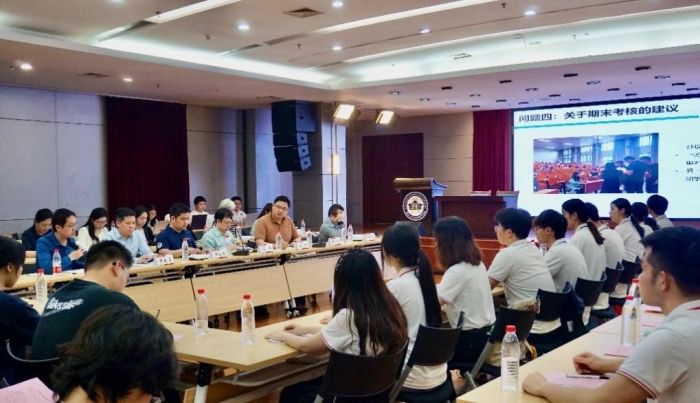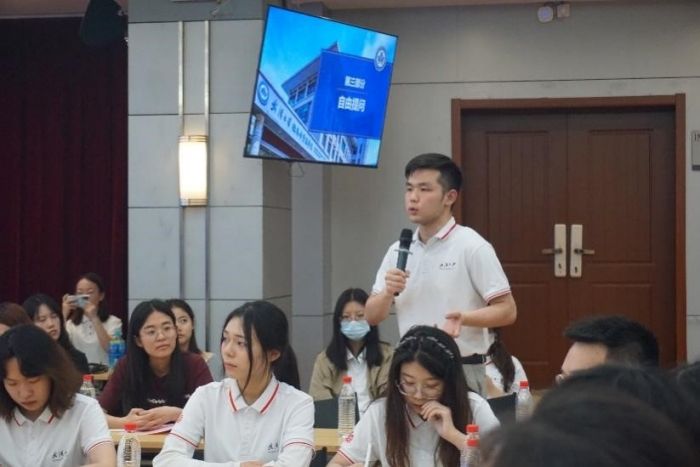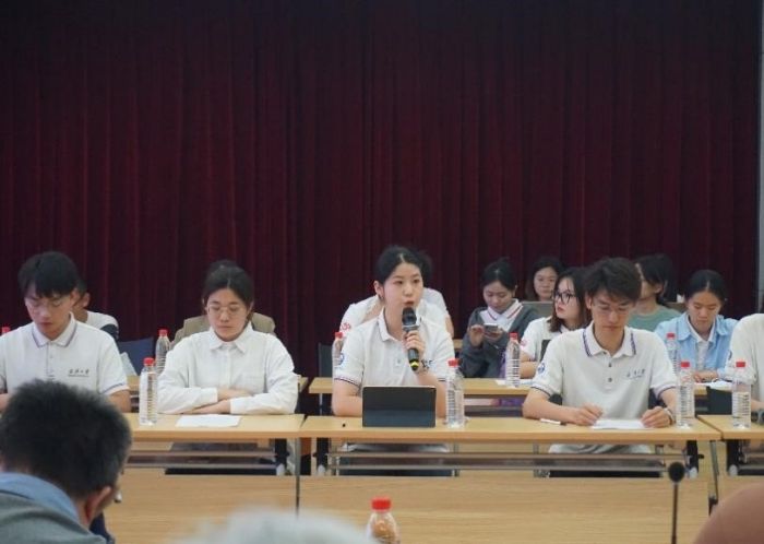 随后,学生代表结合前期调研情况依次对本期提案进行介绍。今年学校的发展主题是“人才培养年”,学院如何创新推进“三全育人”综合改革,培养有理想、敢担当、能吃苦、肯奋斗的新时代好青年是值得思考的重要命题。因此,本期本科生提案围绕学生“全面成长与综合发展”展开,研究生提案围绕学生“拔尖培养与持续发展”展开。2021级本科生黄竞标同学、陈浩新同学、历子陵同学反映了如何进一步扎实基础学习、赋能科研竞赛、提升国际视野三方面问题。2023级硕士研究生赵培培、李婷婷、毕卓茹反映了导学关系、学术科研、就业平台三方面问题。院领导和相关办公室的负责人逐一回复相关问题,并表示始终坚持学生主体地位,认真落实可行的建议,为同学们提供更切实的指导与帮助。