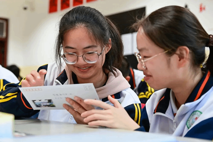 的学子和新疆生产建设兵团第五师高级中学的学生用写信彼此陪伴、共同成长,用一束束微光点燃希望。