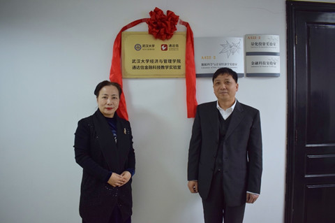捐赠仪式前,姜星莉书记和黄山先生还共同为“通达信金融科技教学实验室”揭牌,并参观了实验室。双方还共建了辣文