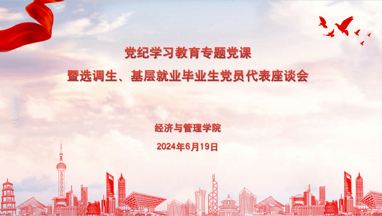 2024届选调生、基层就业毕业生党员代表座谈会在领益报告厅举行,院党委书记王丽萍为毕业生党员讲授党纪学习教育专题党课。院党委副书记李好,院学工和教学办公室负责人,往届优秀校友代表等参加座谈会。院党委副书记杨志威主持会议。