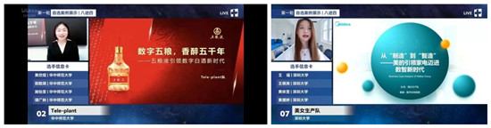 在第一轮自选案例展示中,8支代表队分别就“五粮液引领数字白酒新时代”“欧莱雅的数字化征程”“从‘制造’到‘智造’——美的引领家电迈进数智新时代”等商业案例进行了生动准确的专业分析,提出了对应预期计划与建议,各队伍的展示博得了观众与评委老师的好评。评委老师赞赏各队展示出的风采和团队能力,并对展示内容提出了专业而具有针对性的建议。