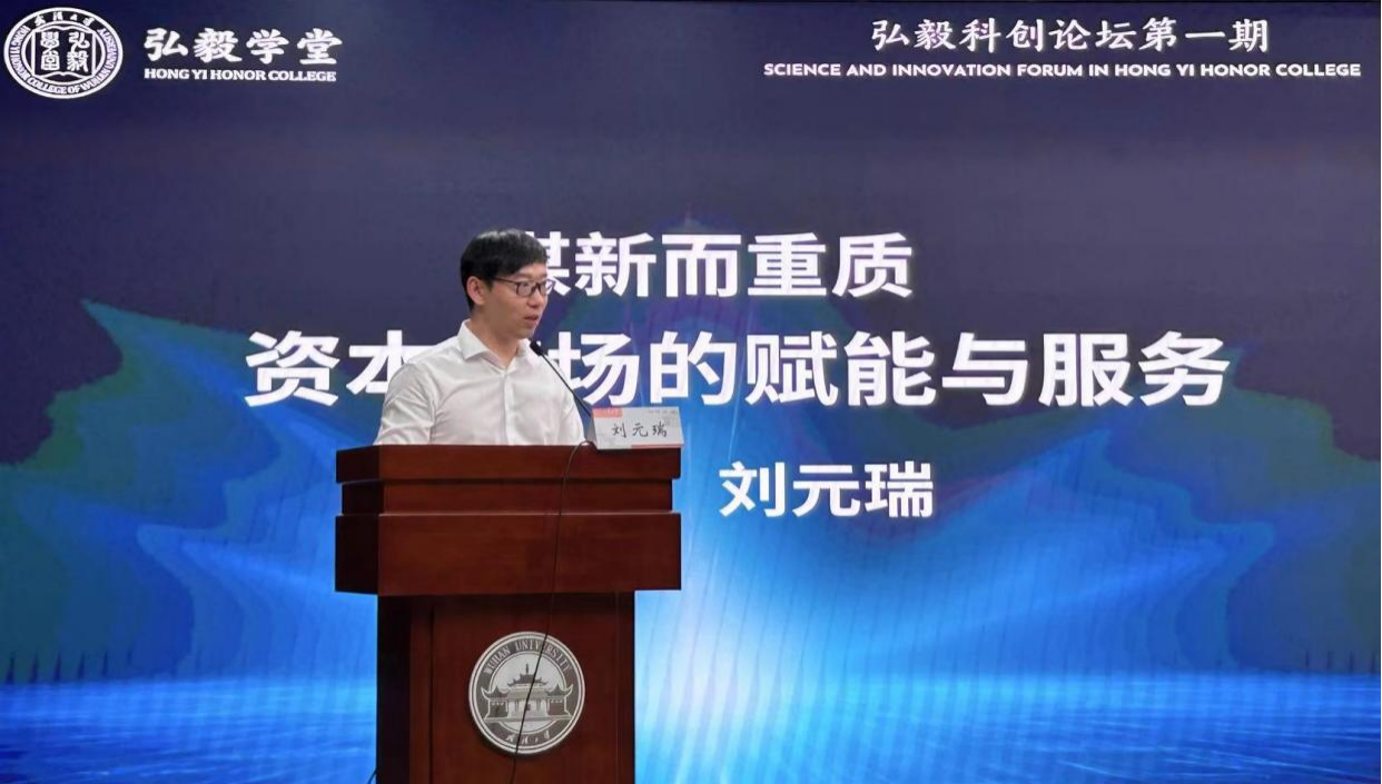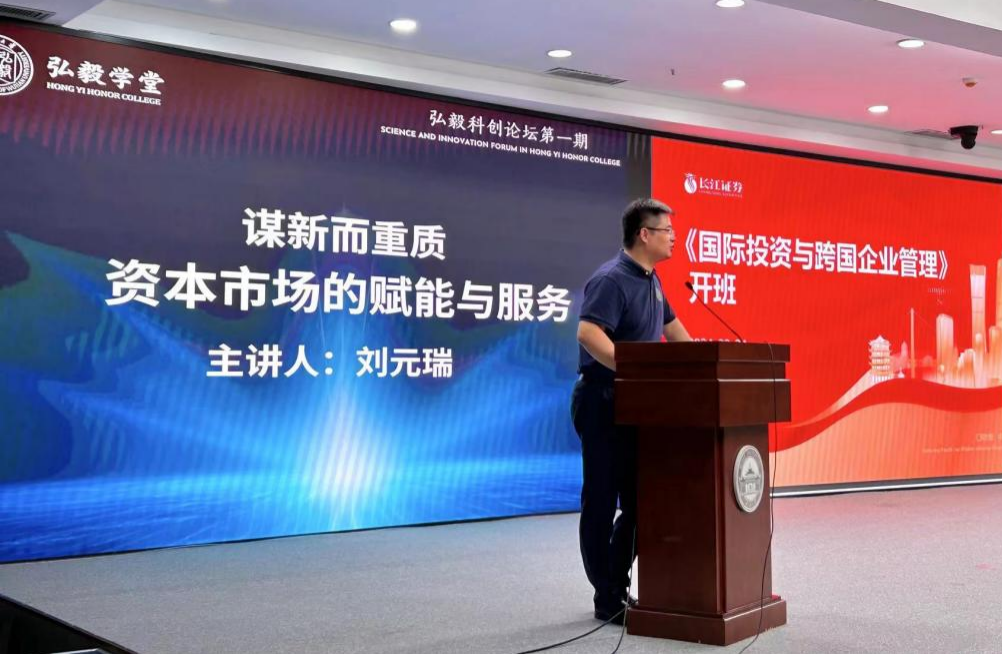 图书馆求是报告厅,长江证券党委副书记、总裁刘元瑞为《国际投资与跨国企业管理》开班,第一讲主题《谋新而重质——资本市场的赋能与服务》。这一讲阐述了金融链接实体、映射经济发展的本质,分析了金融行业的现状和锻炼能力的必要,提出了“有信心、走正道、要努力、靠团队”的行业洞见,提倡“本分、守正、勤勉、合作”的品格。