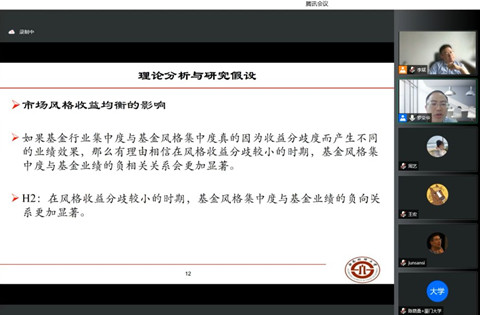 师生带来主题为“盈利搜寻与规模化:行业集中与风格均衡协同视角下的基金能力分析”的学术报告。本次讲座由金融系李斌教授主持,众多校内外师生参加了此次线上讲座。