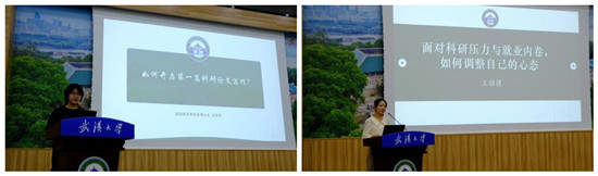 接下来,2022级世界经济专业博士生赵智慧和2021级财政学专业博士生王铭槿就科研方面分别进行了分享。赵智慧学姐分享主题为,如何开展第一篇科研论文写作。她从论文选题、论文写作、论文投稿三个方面,详尽地阐述了如何更高效率地辨别有价值的文献、创造自己的边际贡献、突出论文写作结构、选择合适的投稿期刊。王铭槿学姐分享主题为,面对科研压力和就业内卷,如何调整好自己的心态。她以自身经历出发,真诚地分享了自己在面对就业压力和科研压力下的思想挣扎,建议新生尽早确定自己未来的方向,要放下围城心理,走好当下的路。