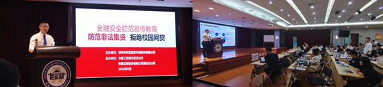 本次活动主要有金融理论学堂和资产配置实践组成。华泰证券人气财经主播李新首先开展了题为“防范非法集资,拒绝校园网贷”的金融安全防范宣传教育。李新讲师运用大学生身边实例,从非法集资的定义、典型特征和社会危害三方面揭开非法集资的神秘面纱;并从非法集资的常见手段、常见形式所需担负法律责任、识别方法和自救方法等多方面加深同学们对非法集资的理解。李新讲师也就校园网贷进行了较为系统的阐述,联系实际生活中的案例,从学生的心理角度出发,剖析学生容易选择校园网贷的原因,同时指出校园网贷虽然利息低便捷度高,但存在较多风险,同学们需要加强警惕。李新讲师接着介绍了资产配置实践系列比赛的基本情况,鼓励同学们参与,加强对活动的深入了解,积极参与相关比赛实践。现场气氛热烈,掌声不断。