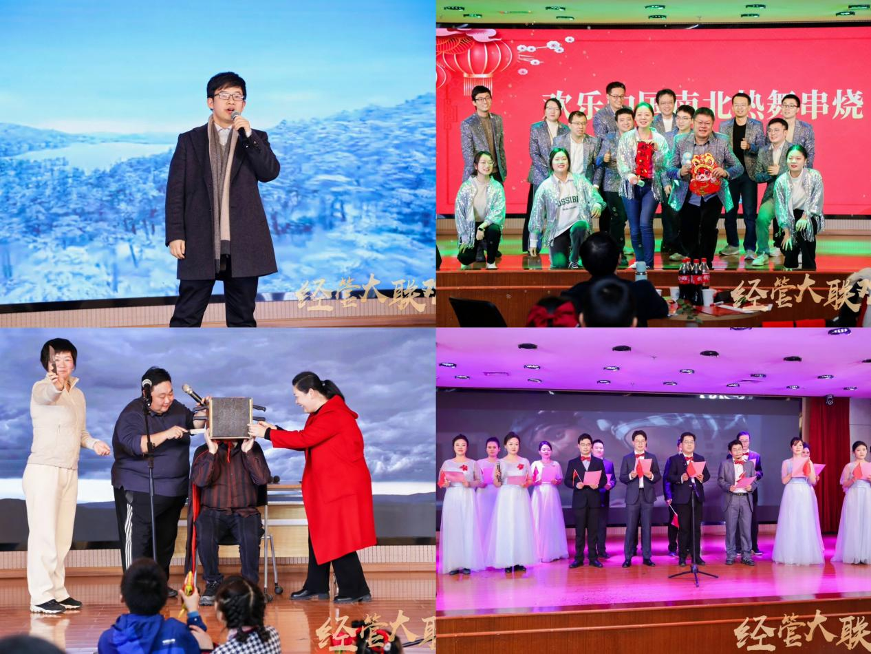 随后,一曲曲动人的旋律、一幕幕精彩的表演轮番上演。财政与税收系带来的曲艺三句半《财税精神颂》以诙谐幽默的方式展现了财税人的风采;本科生工作办公室和研究生工作办公室的唱跳节目《敬业阵线联盟》、经济学系的《欢乐中国南北热舞串烧》通过动感十足的舞蹈与歌声,彰显了教职工的活力与激情;技术经济与创新管理系的歌曲《让世界充满爱》更是唱出了温暖与希望。各系、各办公室的表演团队各展所长,以多样化的艺术形式,生动诠释了学院教职工积极向上、勇于创新、满怀信心、拥抱未来的精神面貌。