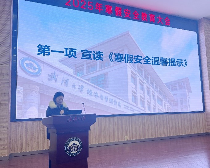 学生安全防范意识与能力,保障寒假留校学生的人身及财产安全,2025年1月10日,在景林报告厅召开了学院2025年寒假留校学生安全教育大会。学院党委副书记李好及全体本科生、研究生辅导员出席会议,申请留校的本科生、研究生到场参会,会议由学院本科生辅导员孙琳子主持。