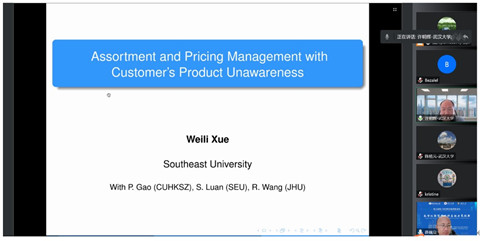 在存在两个销售主体的竞争市场中,消费者的购买决策将更加复杂,消费者往往都会有自身的品牌偏好。经建模推导证明,在竞争的市场场景下,仍存在着类似的结论。在结束两篇论文的分享后,戴悦教授还向大家介绍了建立主模型时“化繁为简”的心得,对将不同市场因素究竟如何放到主模型中或是拓展中,分享了她的独到观点,目的是最终得到既不失一般性又易于理解的论证效果,与会人员深受启发。