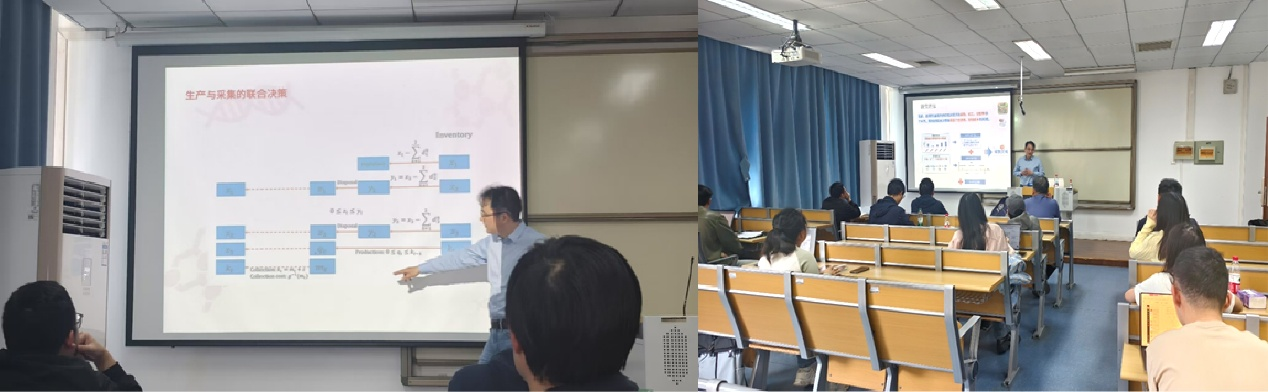 本次报告的主要内容包括:(1)考虑异质需求的易逝品库存管理;(2)血小板采集和库存管理;(3)数据驱动的单仓库-多门店的易逝品库存管理。研究中使用马尔科夫决策过程理论,通过联合决策模型,能显著改善成本,减少浪费。周教授指出当前库存系统对产品有效期记录的不足,并提出将高维问题降维处理以简化复杂性的方法,并结合盒马生鲜、浙江省血液中心和浙一医院等4家机构血液制品管理优化等案例验证以上研究的合理性与有效性。