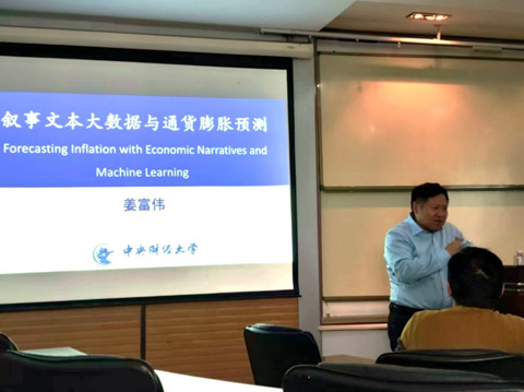 师生带来了题为“基于经济叙事和机器学习预测通货膨胀”的学术报告。讲座由金融系李斌老师主持,20余名师生参会。