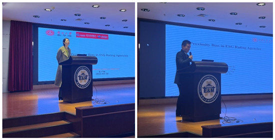 来自南开大学的余莉老师报告了论文《Proximity Bias in Non-financial Rating Agencies》,文章研究了国家之间的制度差异是否会影响企业ESG评级,并进一步探讨了并购所带来的评级影响。西安交通大学的齐堡垒教授对文章进行了点评,并就ESG评级实践进行了讨论,认为ESG的评级过程需要通过实地学习才能进一步理解其中的逻辑与机制。