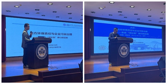来自清华大学的郑秋实博士报告了论文《地方环保责任与企业污染治理——来自“河长制”推行的证据》,文章发现我国“河长制”的推行有利于降低企业工业废水排放水平,促进企业治污减排的效应。上海交通大学的夏立军教授对文章进行了精彩的点评,提出河长制与企业废水排放之间是否有其他逻辑、地区间的方差等针对性的意见。